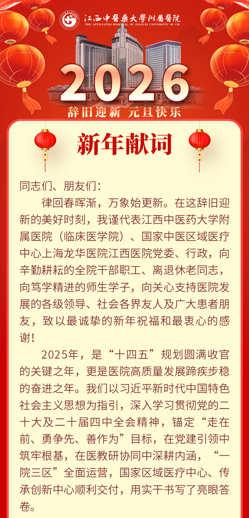 江西中医药大学附属医院2026年新年献词
