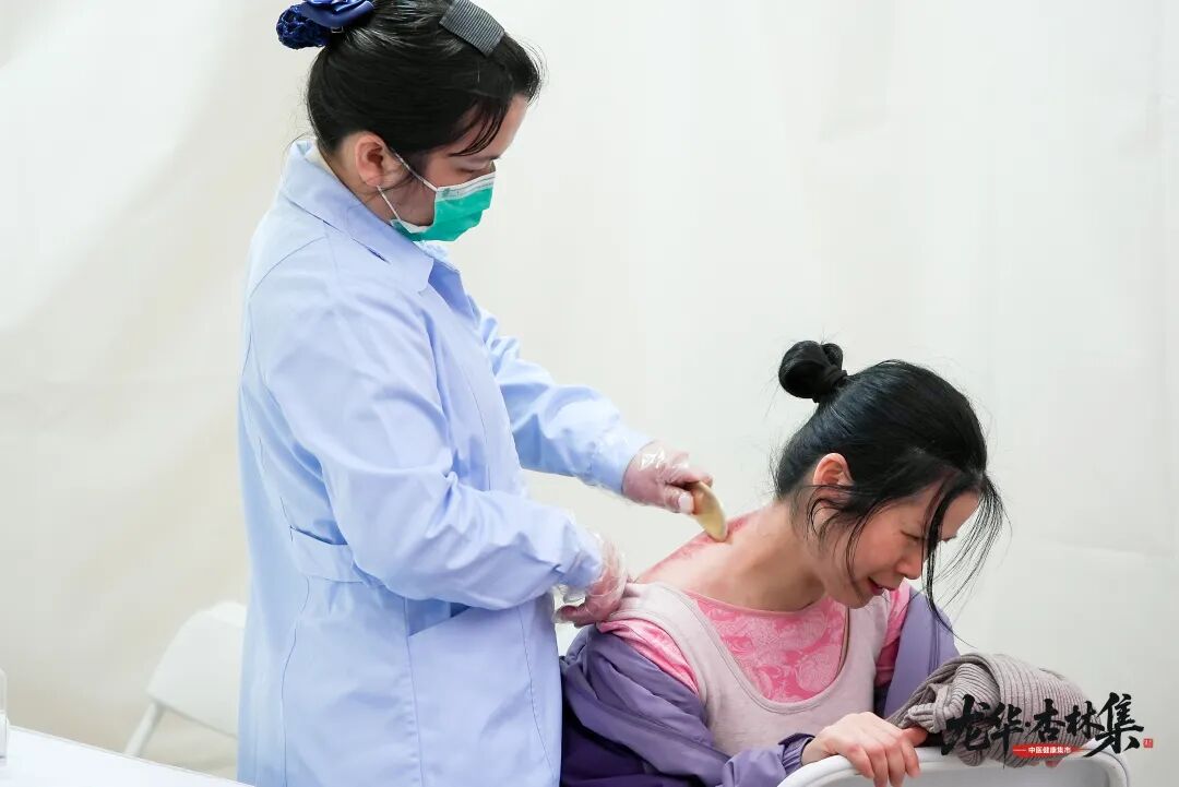 在中医特色技术体验区,来自医院护理门诊的护士们正忙碌地为市民提供火龙罐、耳穴压豆、艾灸、刮痧等特色疗法体验。