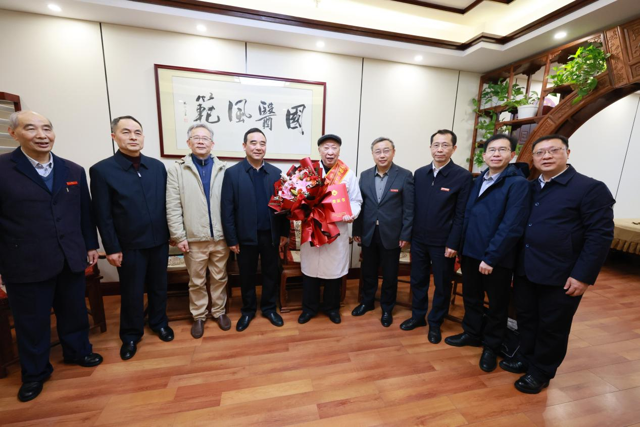 3月13日上午,省教育厅关工委主任甘国华在学校党委书记黄加文的陪同下,来到我院,亲切看望慰问国医大师伍炳彩教授,并送上“全国关心下一代工作先进工作者”荣誉证书。学校党委副书记章德林、省教育工委关工委副秘书长熊春光等陪同慰问。