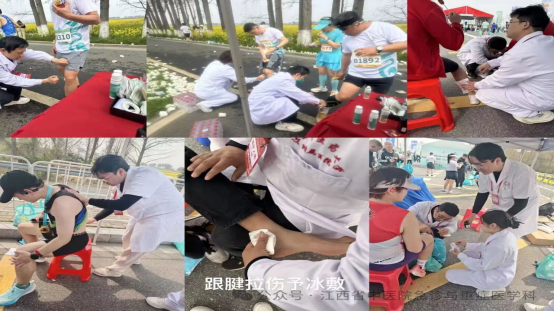 赛事期间,我院主要负责3个医疗保障站点,分别驻守17.6公里处、19.5公里处及完赛区。比赛过程中,面对各类运动损伤、身体不适等突发情况,保障团队反应迅速、处置规范,高效开展伤情处理、急救护理、健康指导等工作,我院免费提供的中药养生茶饮,凭借良好的调理效果和贴心的服务举措,收获了参赛选手的一致好评与广泛赞誉,充分展现了我院的医疗服务水平与中医特色魅力。