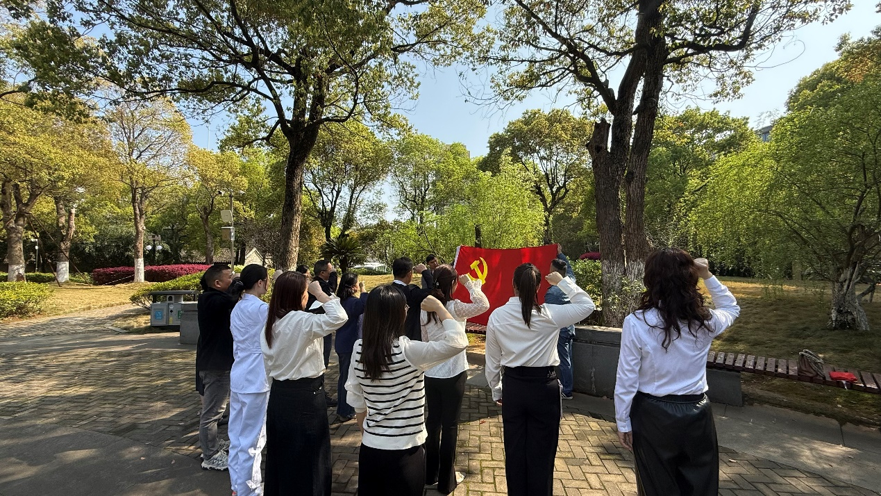 之后,在户外纪念园区,全体党员面向鲜红的中国共产党党旗,整齐列队、举起右拳,庄严宣誓,重温入党誓词。铿锵有力的誓言回荡在园区,既回溯了入党初心,更强化了党员的身份意识与责任担当,激励着每一位党员在岗位上履职尽责、担当作为,以实际行动传承红色基因。