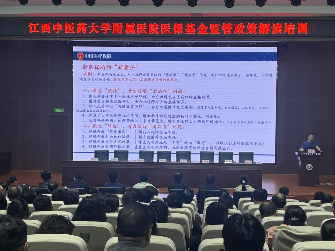 为进一步强化全院党支部书记、科级干部政治责任与合规管理意识,全面压实医保基金使用主体责任,筑牢基金安全防线,近日,我院将医保基金监管专题培训纳入全院党支部书记、科级干部培训班重要课程,特邀江西省医疗保障局基金监管处处长陈福华作专题授课。在家院领导、各党支部书记、副护士长以上干部参加培训。