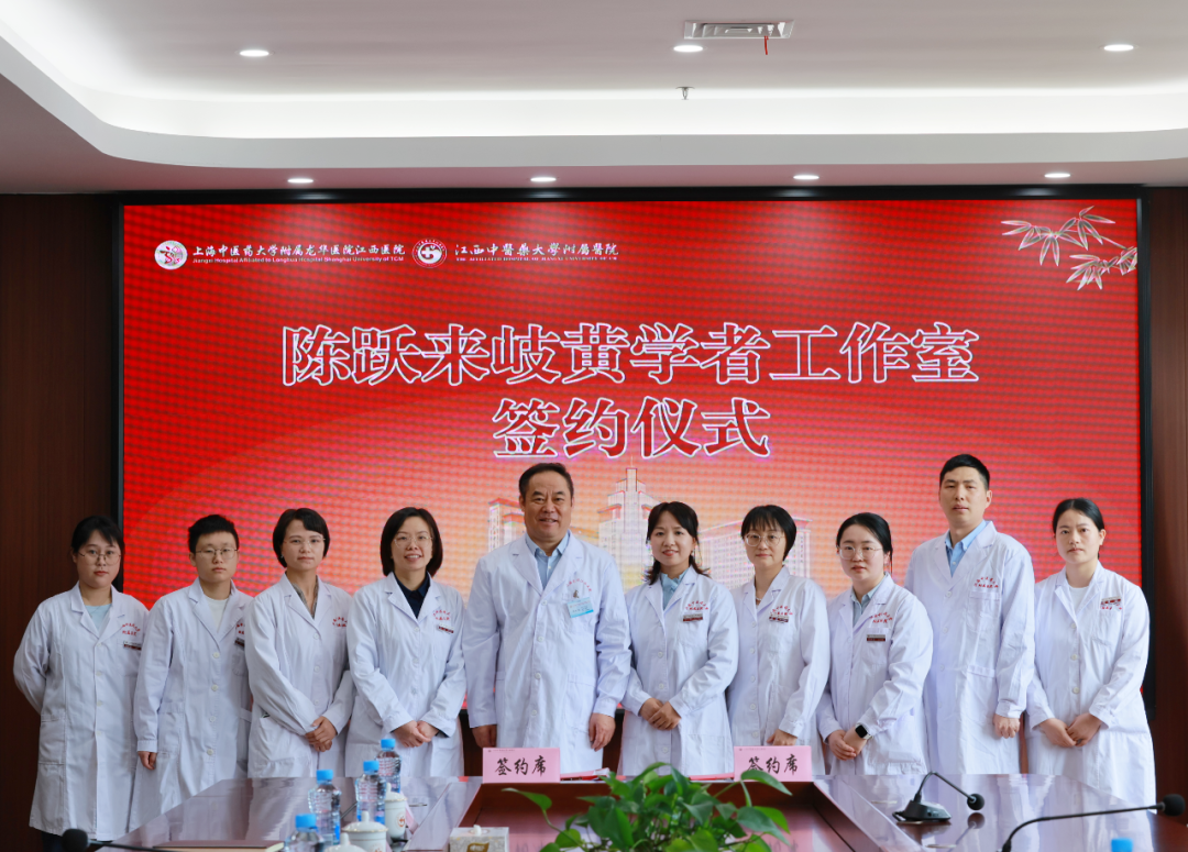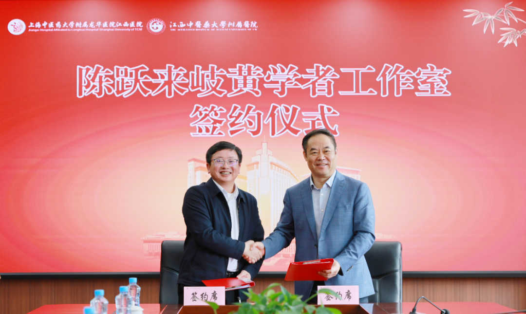 4月24日上午,陈跃来岐黄学者工作室签约仪式在江西中医药大学附属医院举行。上海中医药大学附属龙华医院党委书记、上海龙华医院江西医院总院长、岐黄学者陈跃来,江西中医药大学党委委员、副校长、附属医院党委书记、上海龙华医院江西医院党委书记严小军共同签订《工作室任务书》,标志着工作室正式落户江西,成为国家区域医疗中心深度合作的又一重要成果。仪式由江西中医药大学附属医院党委副书记廖东华主持。