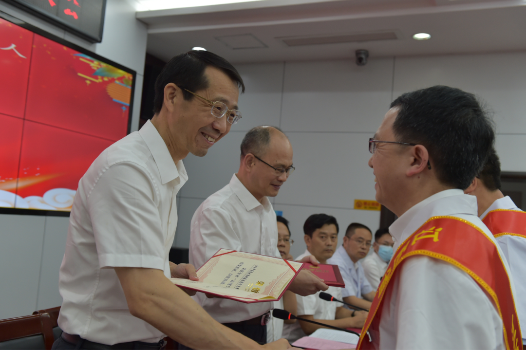 学校党委委员、副校长、附属医院党委书记章德林,医院党委副书记、院长刘良徛为获得江西省优秀医师团队的骨与软组织肿瘤科团队代表张兵、江西省优秀医师个人代表伍建光颁奖。