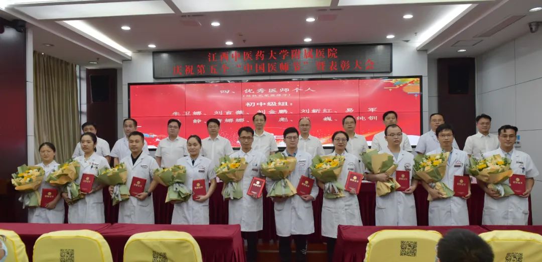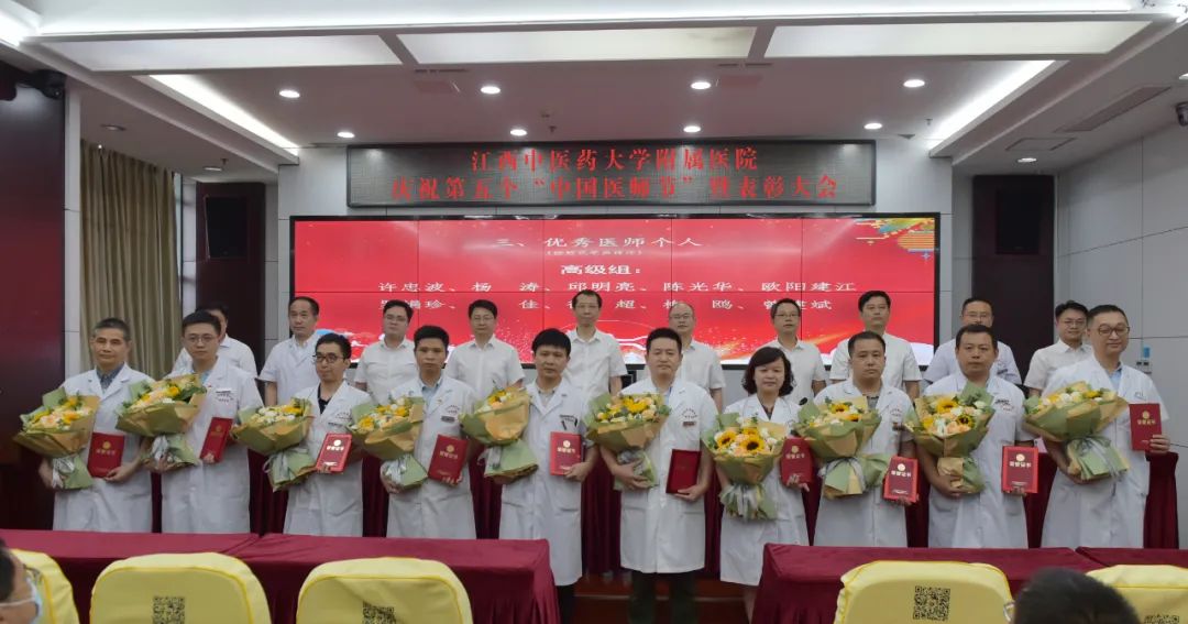 8月16日,江西中医药大学附属医院举行庆祝第五个中国医师节暨表彰大会,庆祝属于医务工作者自己节日的到来。会议为获得江西省优秀医师团队和江西省优秀医师个人的代表颁奖。会议通报表彰了医院优秀医师团队和医院优秀医师个人。全体医师重温了《中国医师宣言》。