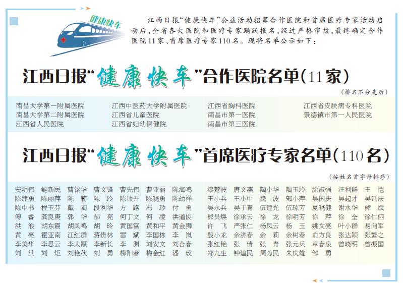 【江西日报】我院及9名专家入选江西日报“健康快车”公益活动合作医院和首席医疗专家名单