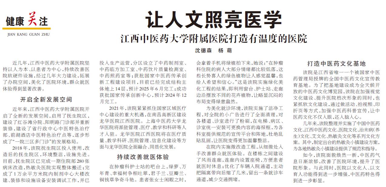 【江西日报】让人文照亮医学 江西中医药大学附属医院打造有温度的医院