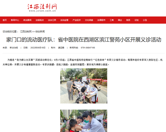 【江西法制网】家门口的流动医疗队:省中医院在西湖区滨江警苑小区开展义诊活动