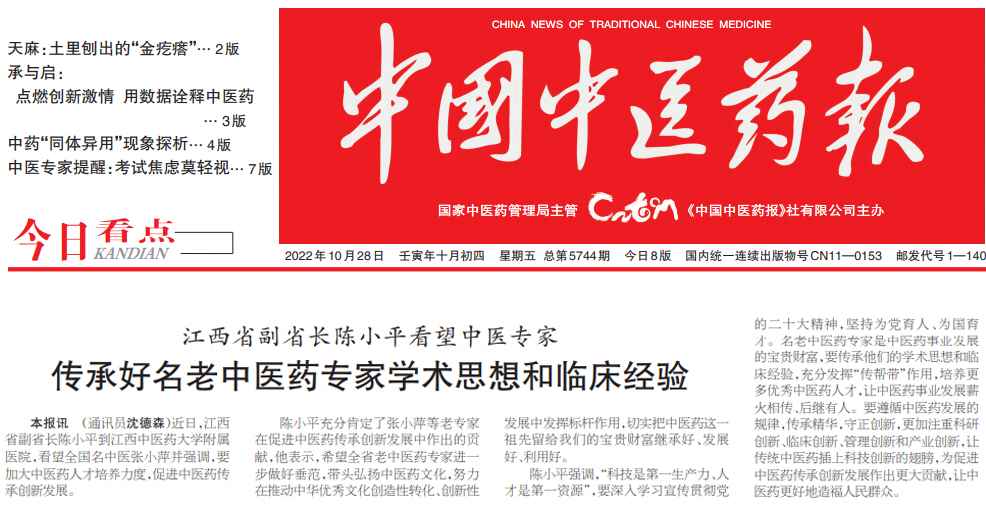【中国中医药报】传承好名老中医药专家学术思想和临床经验