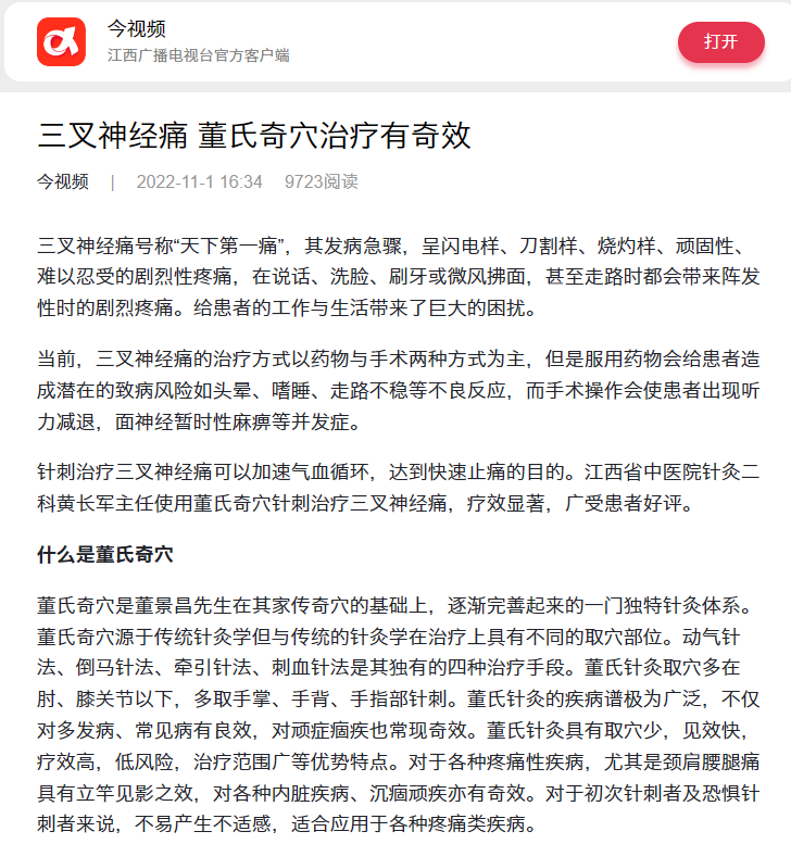 【今视频】三叉神经痛 董氏奇穴治疗有奇效
