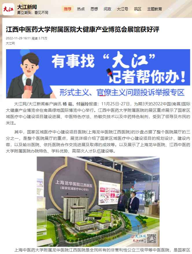 【大江网】江西中医药大学附属医院大健康产业博览会展馆获好评