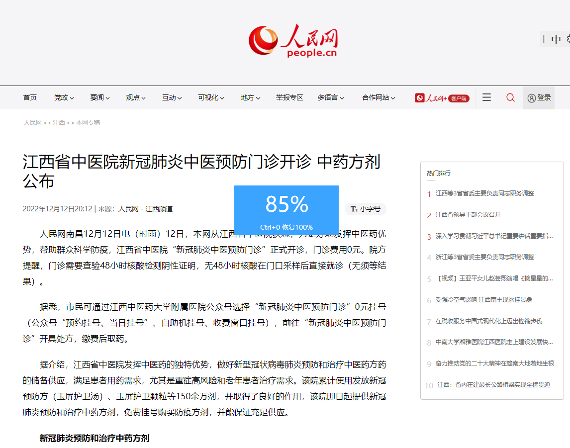 【人民网】江西省中医院新冠肺炎中医预防门诊开诊 中药方剂公布