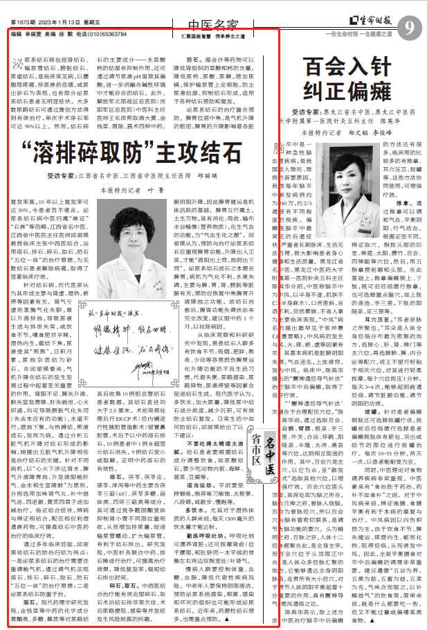 通过多年临床经验,邱丽瑛将结石的防治归结为两点:一是泌尿系结石的治疗需要注重调畅气机,通过调气机实现溶石、排石、碎石、取石、防石“五位一体”的治疗思想;二是泌尿系结石防重于治。
