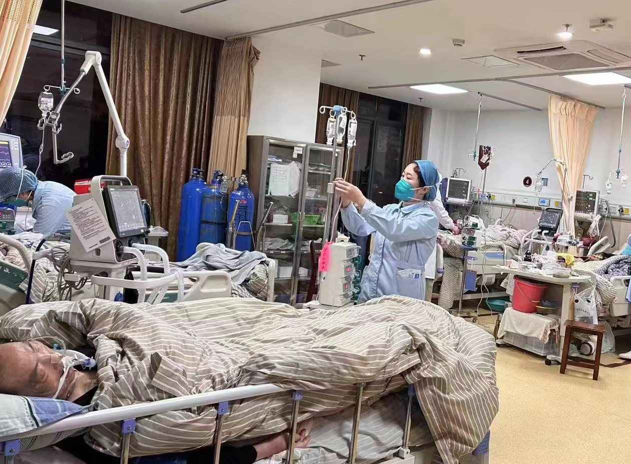 同时,医院抽调了有多次抗疫经验医务人员组建医疗专班,分区包干病区开展医疗巡查。医院还成立临床督导组,每日走访临床科室,让病情得到缓解的患者尽快转入普通病房、让病情好转的轻症患者尽快出院,保证重症床位收治急危重症患者。