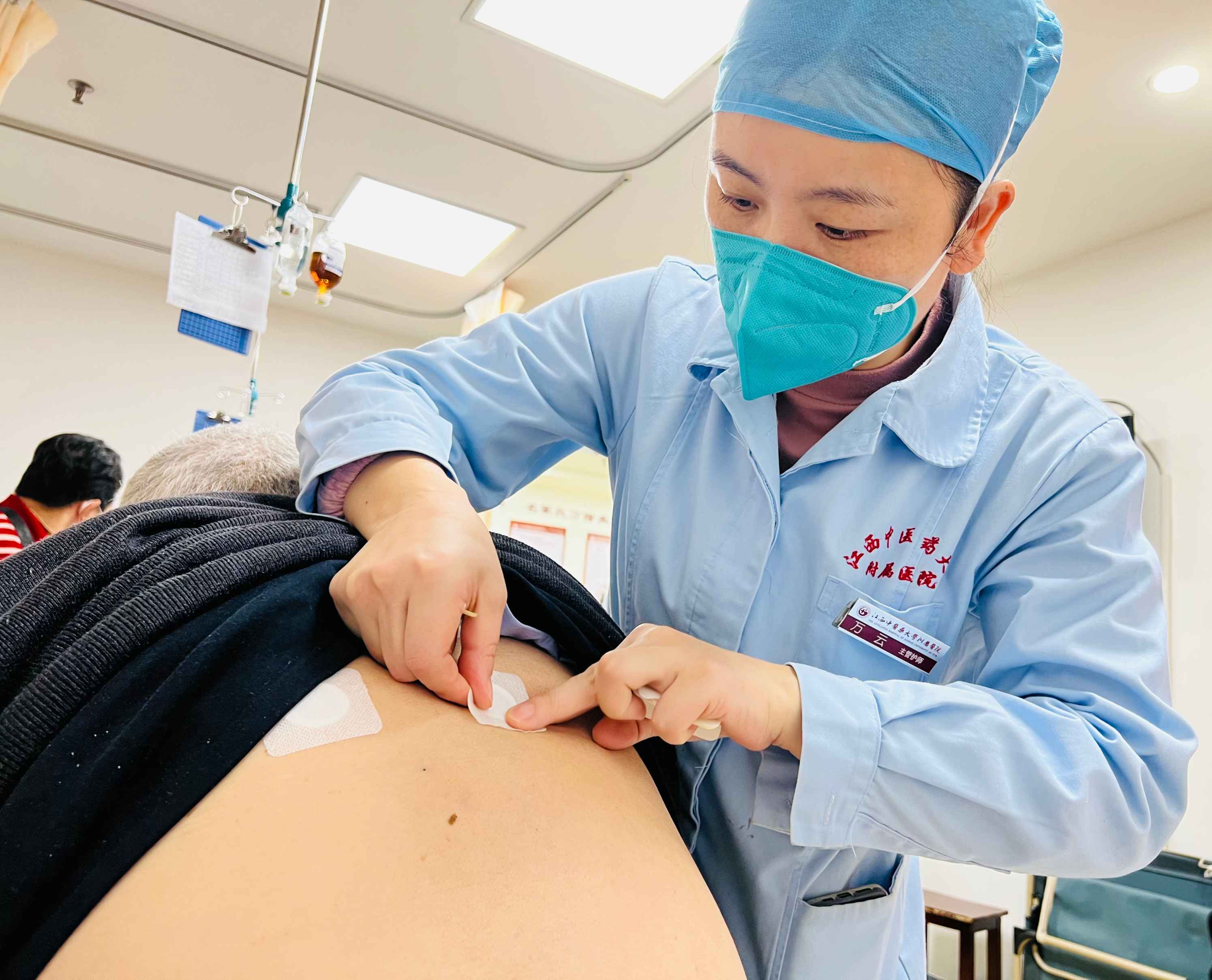 (2023年1月12日,江西中医药大学附属医院护士为新冠病毒感染患者做穴位敷贴治疗。)