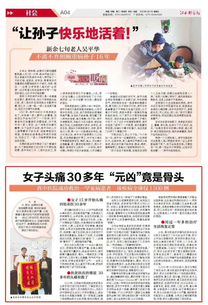 【江南都市报】女子头痛30多年“元凶”竟是骨头