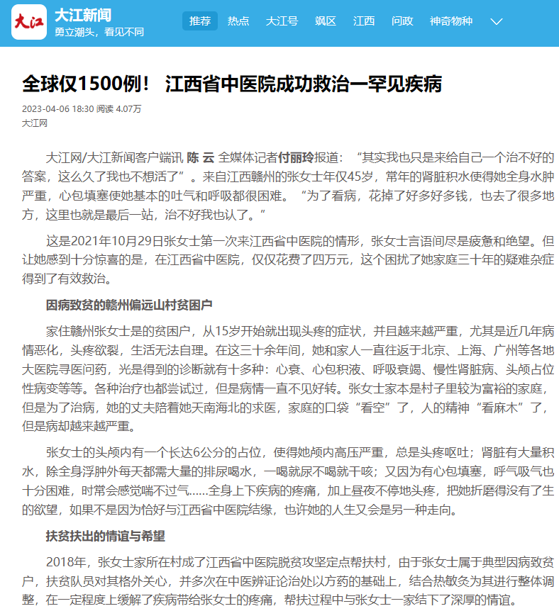 【大江网】全球仅1500例! 江西省中医院成功救治一罕见疾病