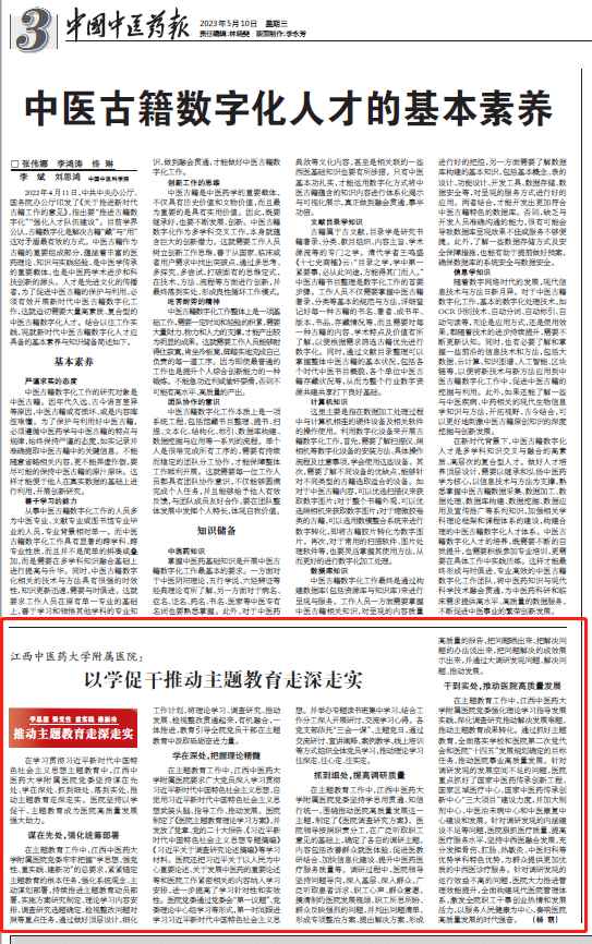 【中国中医药报】江西中医药大学附属医院: 以学促干推动主题教育走深走实