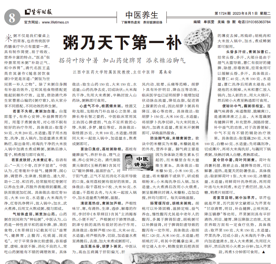 米粥不仅是我们餐桌上常见的一种食物,也是药膳食疗方法中的一种,它具有制作简便、易于吸收、营养丰富的特点。医圣张仲景常用米粥以“补助正气、和中养胃”,清代名医王孟英在其著作《随息居饮食谱》中更是言道“粥饭为世间第一补人之物”。除了米粥自身拥有补益功效外,它和其它食物的搭配更能起到神奇的疗效。接下来借助清代养生家曹慈山编的《粥疗歌》,给大家分享一下不同搭配的养生粥。