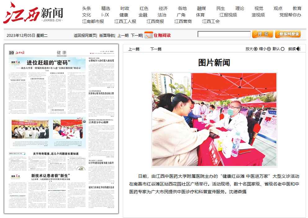 【江西日报-图片新闻】由我院主办的“健康红谷滩 中医进万家”大型义诊活动在红谷滩举行