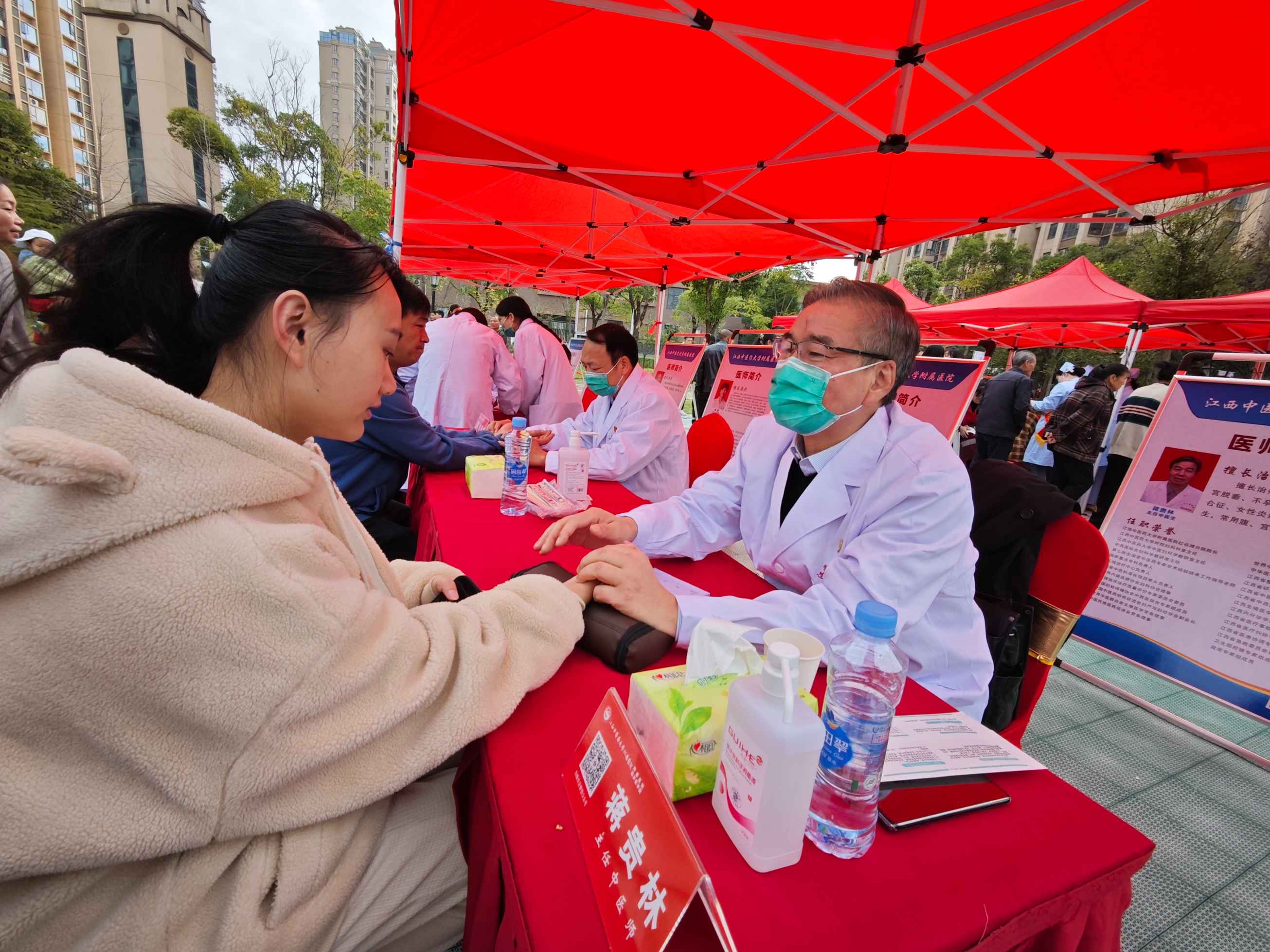 日前,由江西中医药大学附属医院主办的“健康红谷滩 中医进万家”大型义诊活动在南昌市红谷滩区站西花园社区广场举行。活动现场,数十名国家级、省级名老中医和中医药专家为广大市民提供中医诊疗和科普宣传服务。沈德森摄