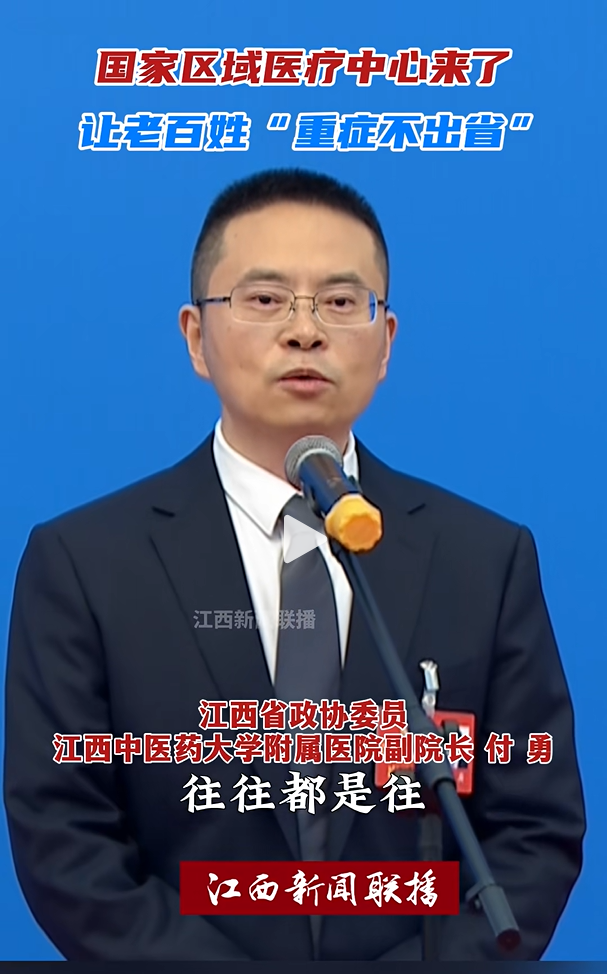 2026年1月26日,江西省政协委员,江西中医药大学附属医院副院长付勇在江西两会上说:“当前,咱江西老表遇到重症,往往都是往‘优势医疗资源集中’的‘北上广’跑,来回奔波十分不便,建立国家区域医疗中心,是优质医疗资源扩容下沉和均衡布局的关键举措,我院与上海龙华医院合作共建的上海龙华医院江西医院就是一个标志性成果,该院已全面平移上海龙华医院的品牌、技术和管理经验,已经在人才梯队培养,跨省制剂调剂,还有重点专科建设等方面取得了实质性进展,这不仅是简单‘送技术’,更是引进了一套可持续的‘优质医疗资源下沉’与‘辐射机制’。”