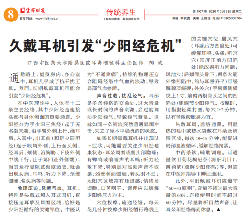 【生命时报】久戴耳机引发”少阳经危机“