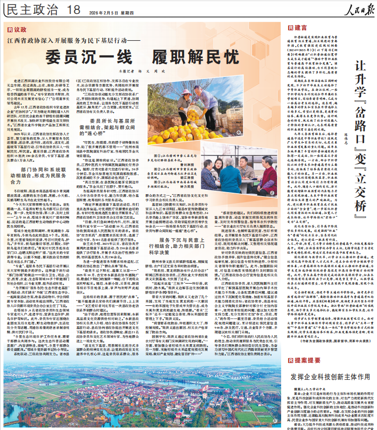 【人民日报】江西省政协深入开展服务为民下基层行动—— 委员沉一线 履职解民忧(议政)