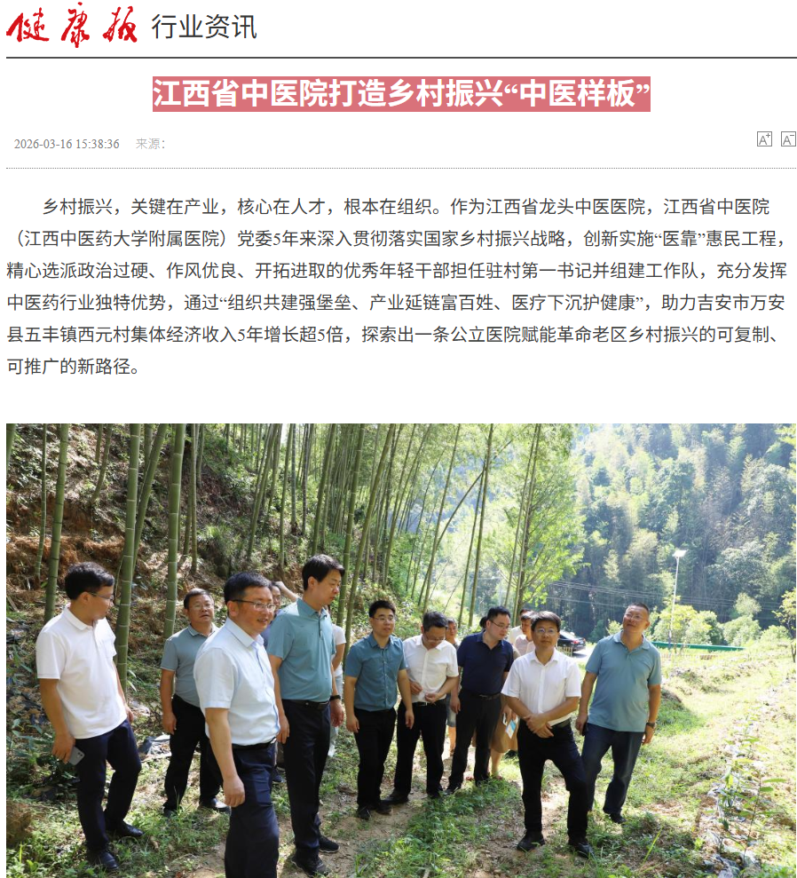 【健康报】江西省中医院打造乡村振兴“中医样板”