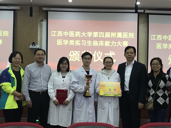 10月24-25日,江西中医药大学第四届附属医院实习生临床能力竞赛在湾里校区实验大楼模拟医院举行,我院代表队荣获团体一等奖。