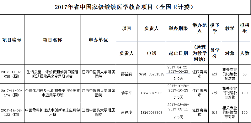 我院申报成功2017年度国家级继续教育项目15项