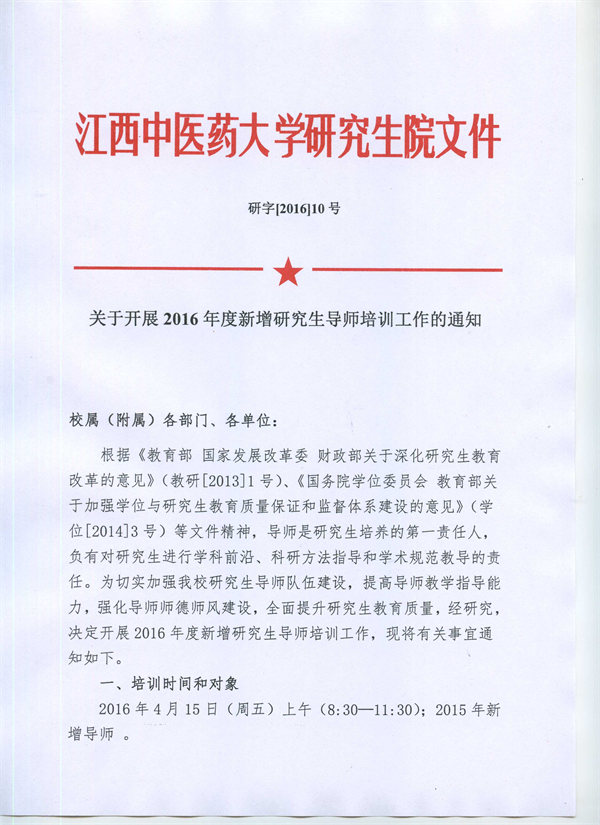 关于开展2016年度新增研究生导师培训工作的通知