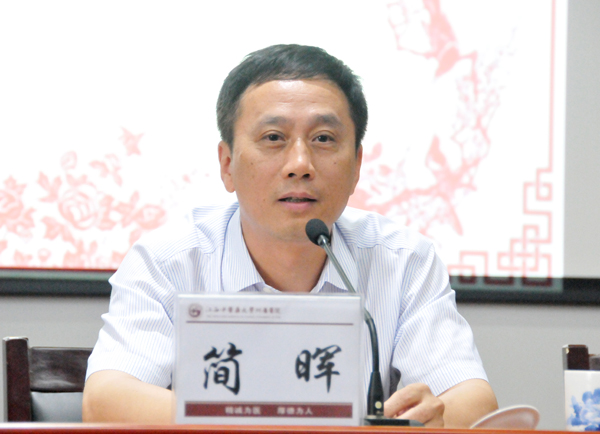 副校长、学校中医学专业认证工作领导小组常务副组长简晖出席会议并讲话。(沈德森 摄)