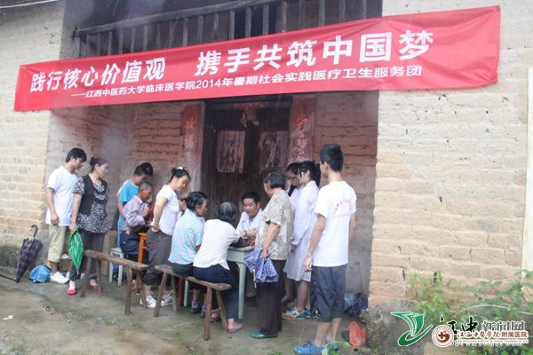 近日,临床医学院联合江西省中医院走进江西星子县开展2014年“践行核心价值观 携手共筑中国梦”暑期社会实践活动。(叶桂英摄)