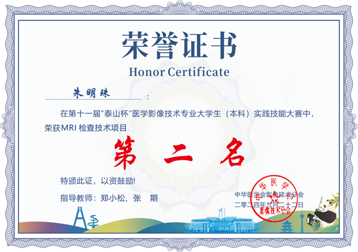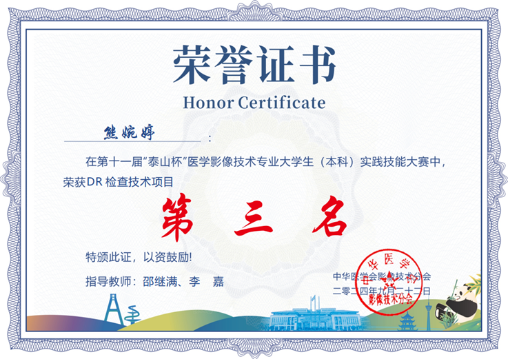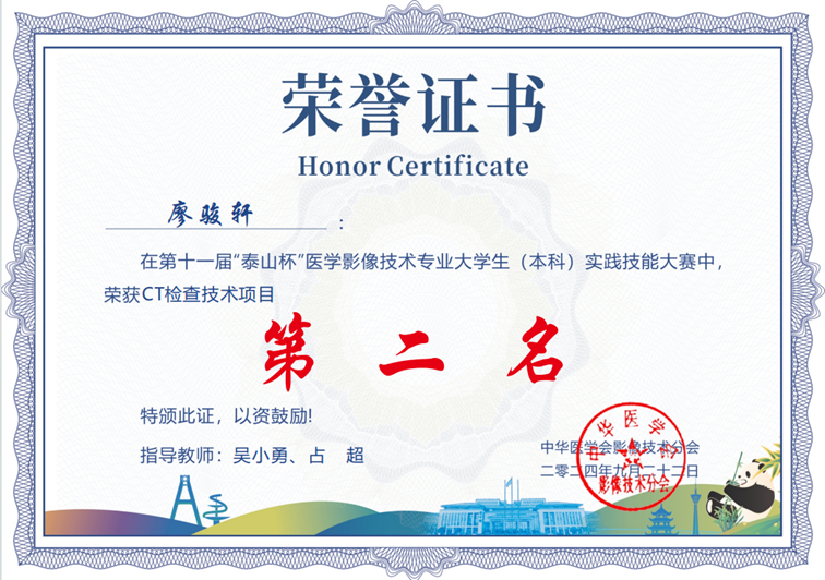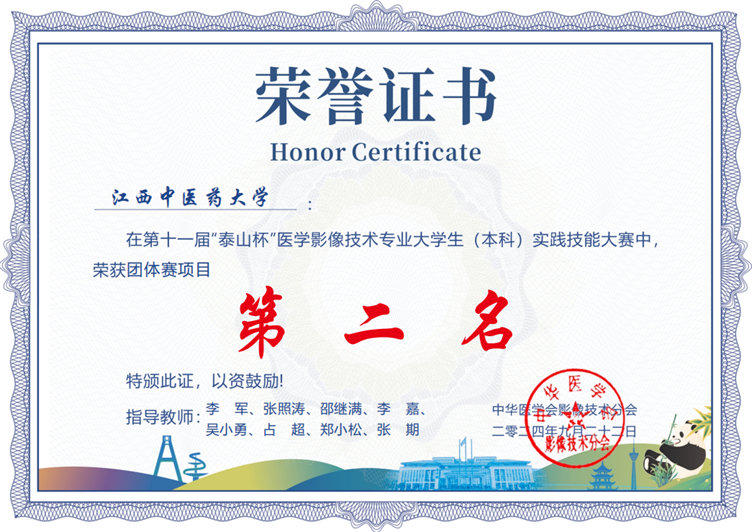在刚刚结束的第十一届“泰山杯”医学影像技术专业(本科)实践技能大赛中,由我院医学影像科指导的2024届医学影像技术专业实习生(江西中医药大学2021级医学影像技术专业学生)取得佳绩。