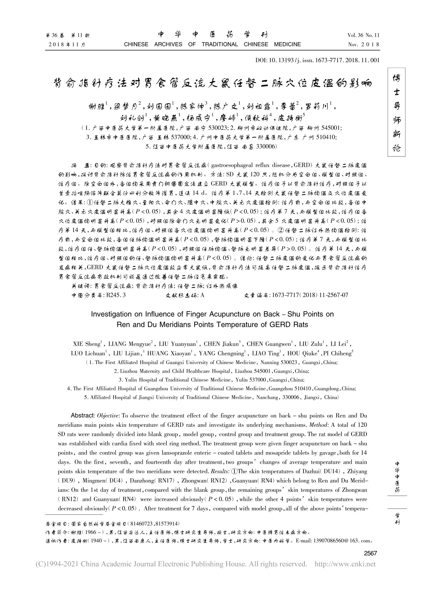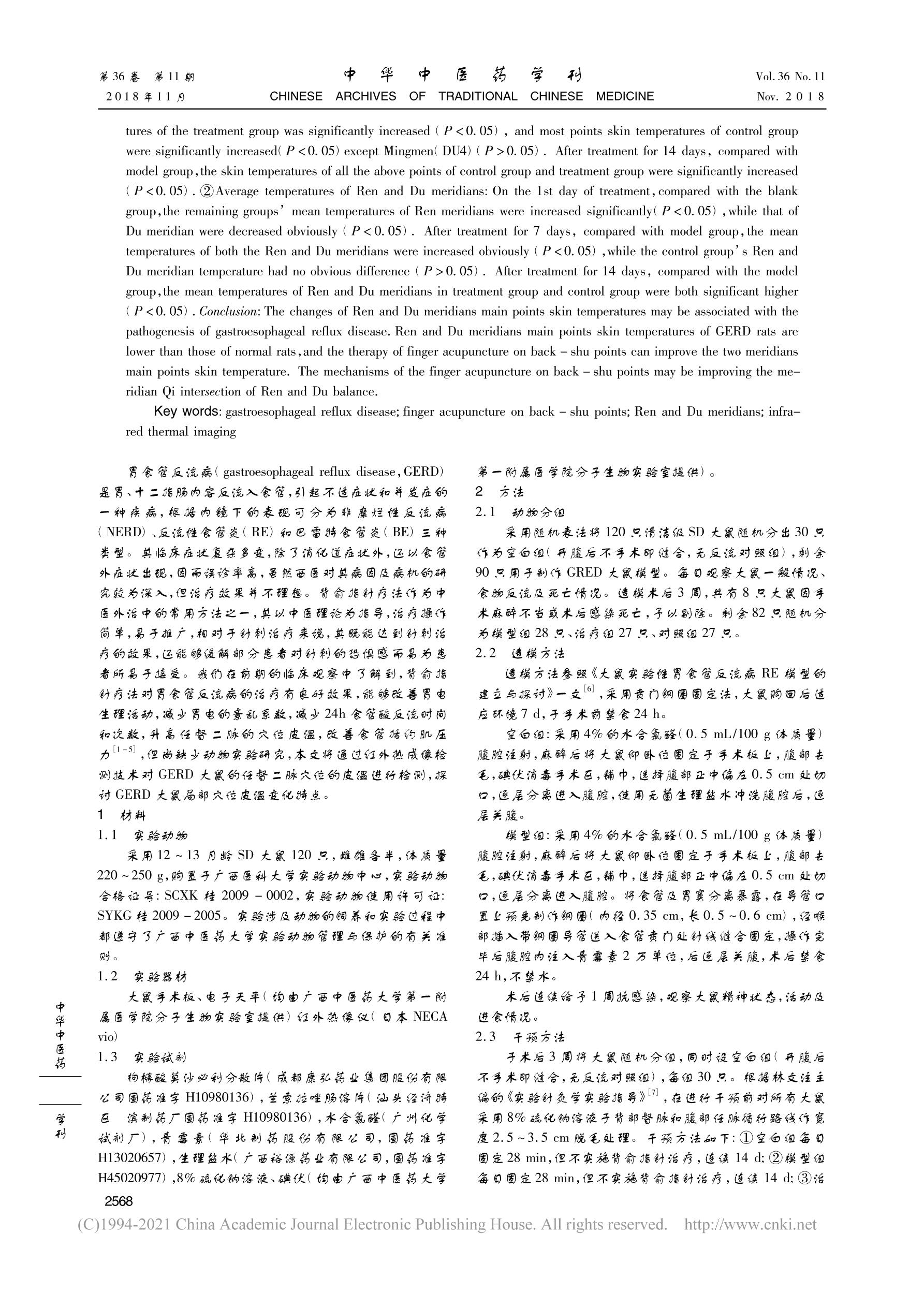 背俞指针疗法对胃食管反流大鼠任督二脉穴位皮温的影响_谢胜