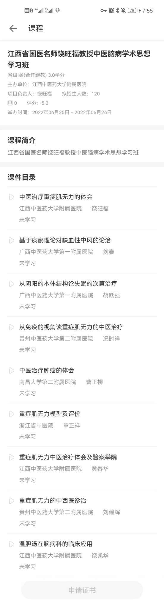 由江西中医药大学附属医院饶旺福国医名师传承工作室承办的2022年省级继续教育项目《江西省国医名师饶旺福教授中医脑病学术思想学习班》因疫情原因于2022年6月18~19日在掌上华医网平台授课。来自省内100余位从事中西医脑病等相关学科的医师、治疗师、研究生、规培生参加了本次学习班。