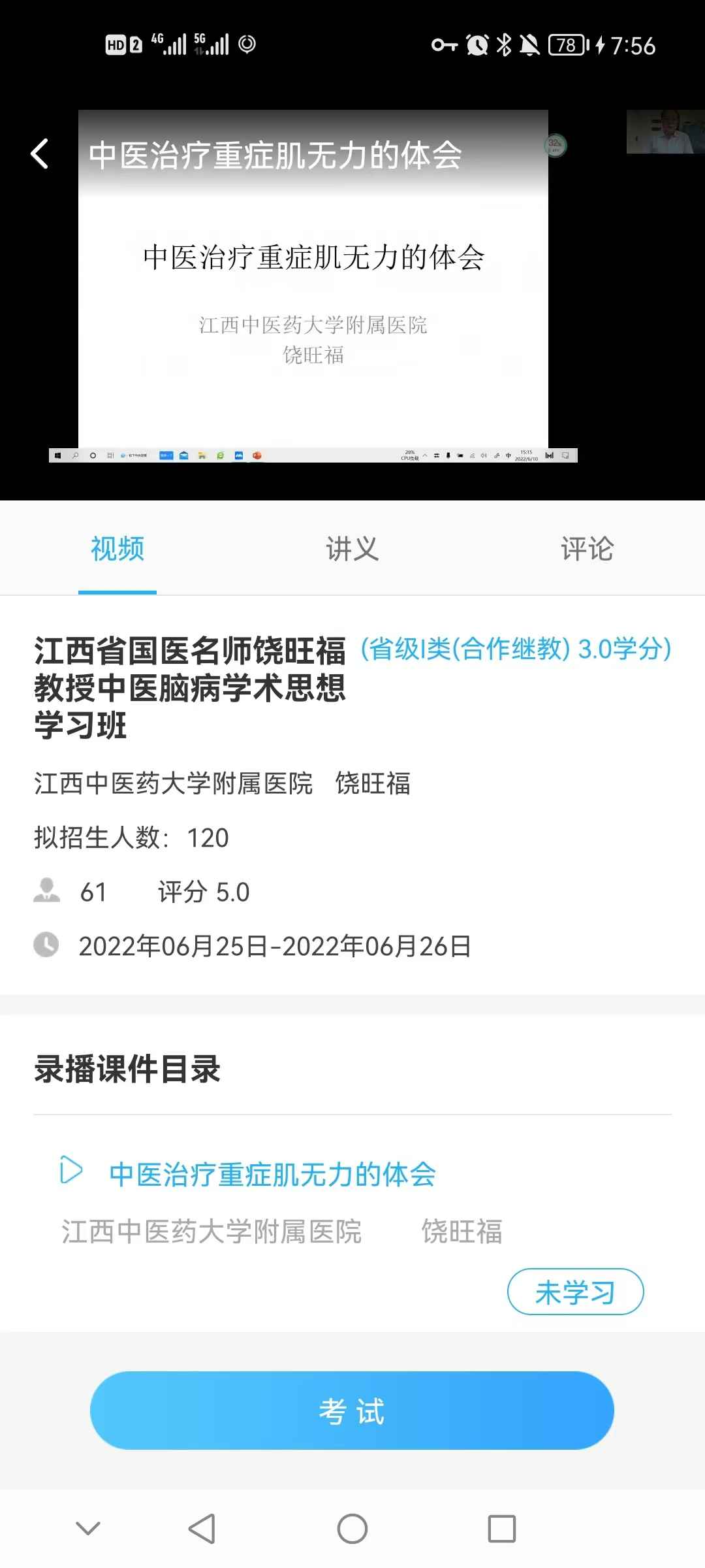 此次学习班着重邀请了江西省国医名师饶旺福老教授及弟子工作室负责人黄春华主任中医师就中医药治疗重症肌无力的学术经验和临床案例进行详细的介绍与展示,学员们对此表现出浓厚的学习兴趣,并完成了课后答题。