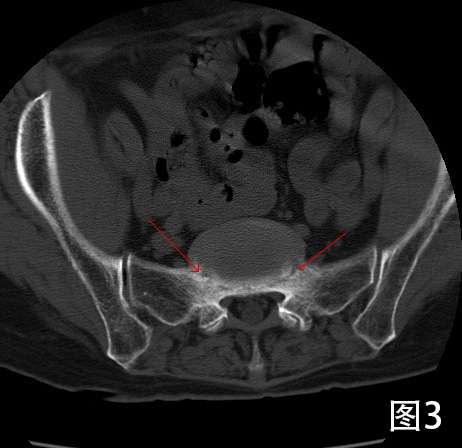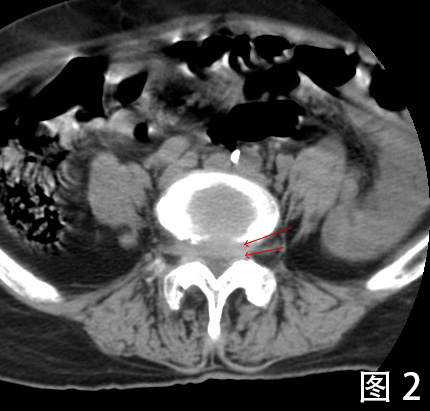 专科检查:2022-08-17 腰椎CT平扫检查阅片:腰椎椎体序列不稳定,椎管内可见增生钙化,继发椎管骨性狭窄。根据Meyerding分级, L4椎体向前I度滑脱,L5椎体向前II度滑脱,为连续2个节段的退行性滑脱(图1)。L3/4、L4/5、L5/S1椎间盘膨出,硬膜囊受压。L4、L5椎体小关节增生硬化明显,相应节段竖脊肌萎缩。椎间盘于相邻椎体层面以相反方向超出椎体边缘“夹心征”(图2)。L5椎体假关节形成(图3)。