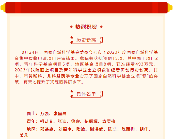 工作室继承人胡佳再获科项立项,先后实现新技术创新项目在省及国自然立项。