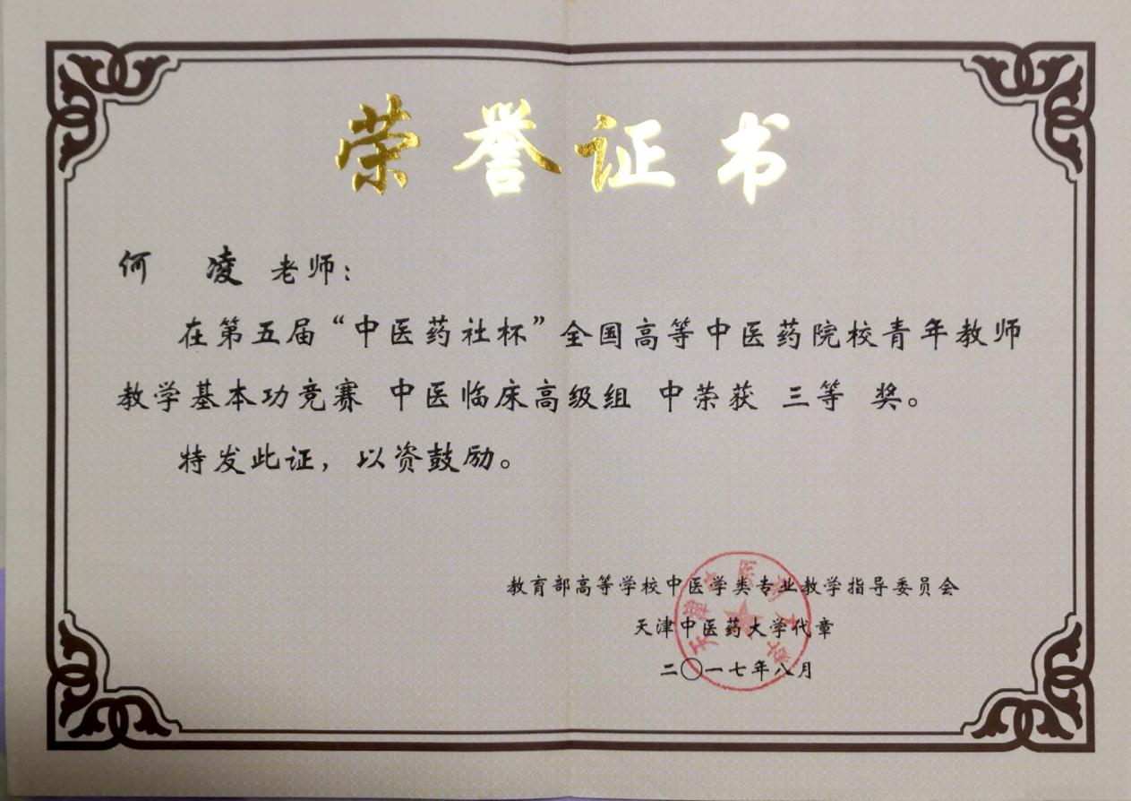 何凌 第五届“中医药社杯”全国高等中医药院校青年教师教学基本功竞赛三等奖