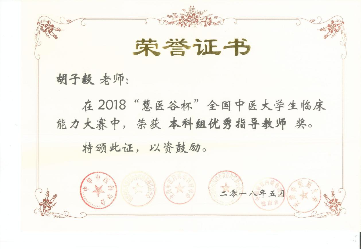 胡子毅 “慧医谷杯”全国中医大学生临床能力大赛优秀指导老师