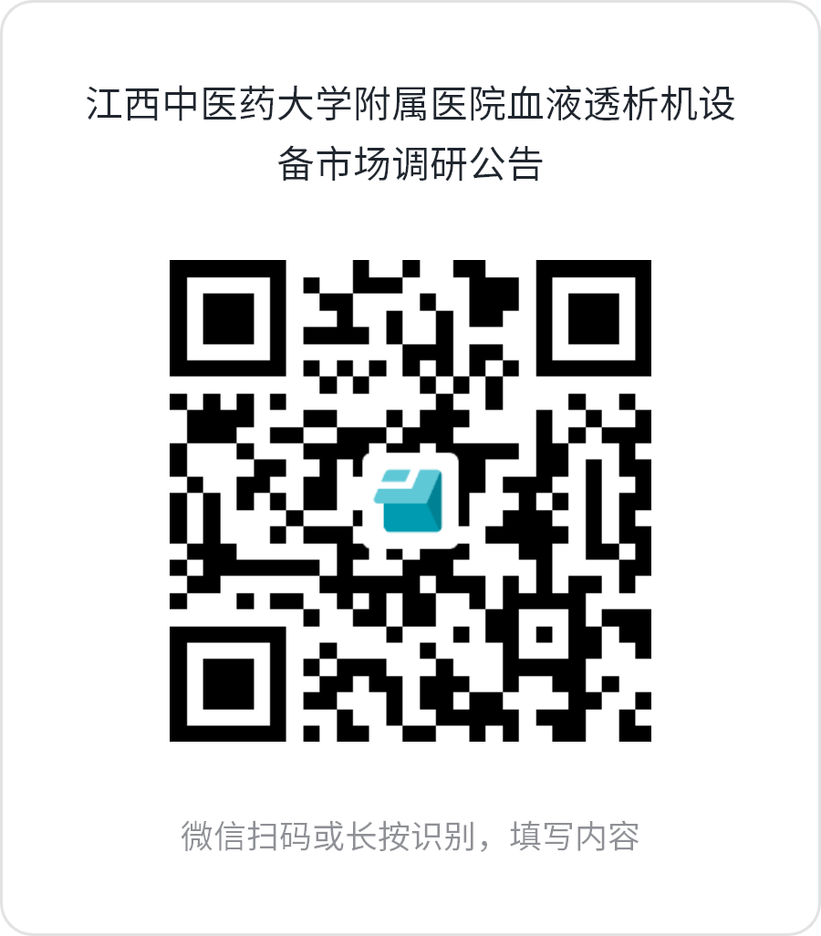 根据《中华人民共和国招标投标法》及相关法律法规和《江西中医药大学附属医院招标采购管理办法》,依照公开、公平、公正的原则,依据我院医疗临床需要,拟对我院拟采血液透析机设备进行市场调研,欢迎符合条件的生产商、供应商参加采购调研。(具体参数要求见附件一)