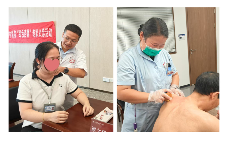 活动当日,来自妇科、针灸三科、肾病科、中医外科、体检中心等科室的专家刚一落座,职工们便排起了长队。职工王先生说:“我肩颈这块难受,平时工作又比较忙,没时间去医院,听说这次有针灸的专家过来,我马上报了名!”与此同时,妇科诊疗区域也深受女职工们的欢迎,妇科专家万萍为女职工把脉问诊并仔细嘱咐到,“平时注意不太贪凉,冷饮雪糕夏天也不要吃。”体检中心诊疗区域中,职工李女士特意拿了体检报告过来,她说:“徐医生回答得特别仔细,还能给出一些中医的调理建议。”中医特色治疗体验区成为热门区域,护理门诊的医护人员手持特制陶罐,利用艾条燃烧产生的温热之力在患者背部游走。“很神奇,感觉热流从皮肤渗进肌肉,像在做深度理疗!”一名体验后的职工如是评价。