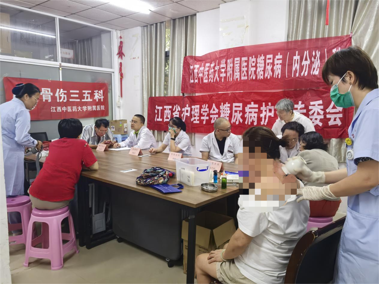 活动现场,糖尿病科青年文明号预创建集体成员和各科医护人员热情周到地为居民提供测血压、测血糖等基础检查,并细致解答关于慢性病管理、呼吸道保健、骨骼健康等问题。护理团队特别带来中医特色温灸罐服务,通过温通经络、祛寒除湿,让居民体验传统中医技术的独特魅力,深受中老年朋友喜爱。纷纷称赞:“你们来得太及时了,这才是实实在在的关怀!”
