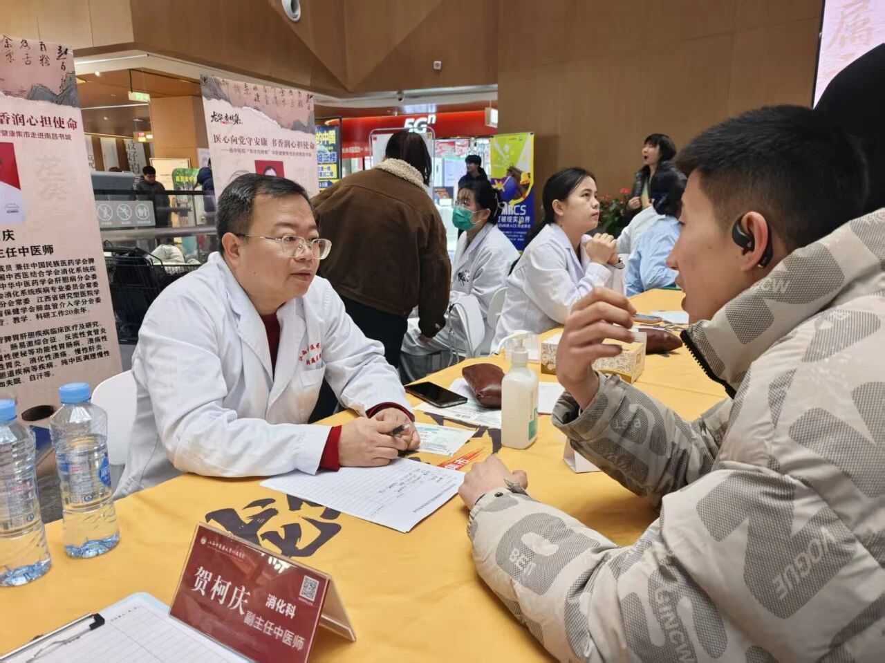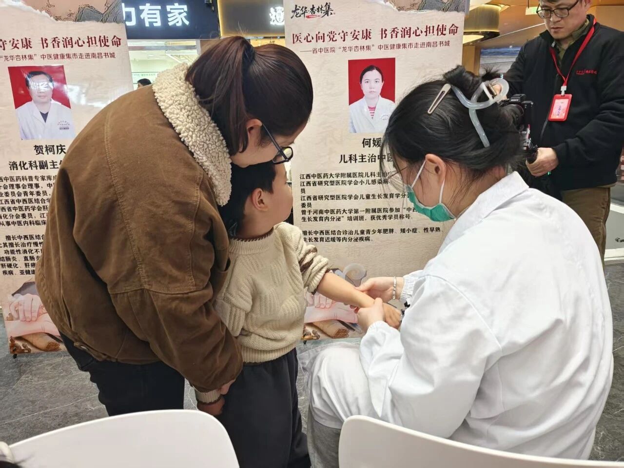 2月 28 日下午,我院在南昌书城举办中医健康集市 “龙华杏林集”。本次活动以 “医心向党守安康,书香润心担使命” 为主题,将优质三甲医疗资源与公共文化空间深度融合,通过公益义诊、文化体验等多元形式,为市民带来一场兼具专业医疗服务与传统文化魅力的健康盛宴,让中医药智慧在书香阵地中落地生根,收获广泛好评。