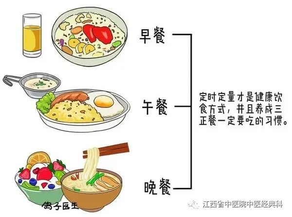 2.饮食要规律 胃酸的分泌具有一定的规律性,即一日三餐是分泌高峰。因此,要按照三餐时间规律进食,且每餐的进食量应适度,杜绝暴饮暴食、饥一顿饱一顿等进食不规律的现象。另外,还要少吃辛辣刺激性和难以消化的食物。