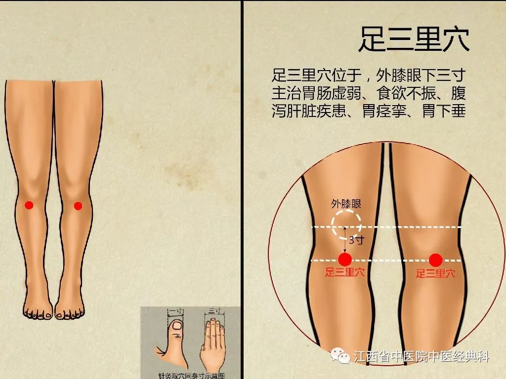 “肚腹三里留”,足三里是调养脾胃的大穴,也是人体的重要强壮穴。凡是肚腹的问题都可以用足三里这个穴位治疗。