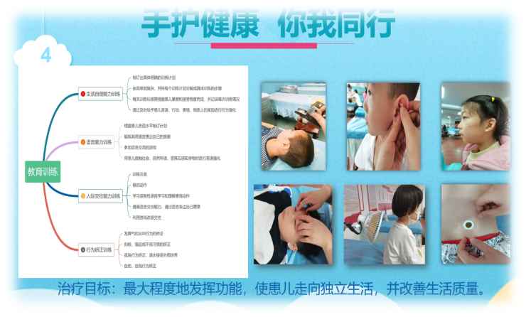 2023年4月18日,江西中医药大学附属医院儿科与南昌慧聪儿童康复训练中心携手共同关爱自闭症儿童,以“手护健康,你我同行”为主题,开展健康宣教及义诊活动,通过讲解小儿推拿等中医外治法在自闭症康复中的作用及优势,不断提升中医综合治疗在自闭症康复中的运用,为自闭症儿童及家长提供更多可选择的康复方案。