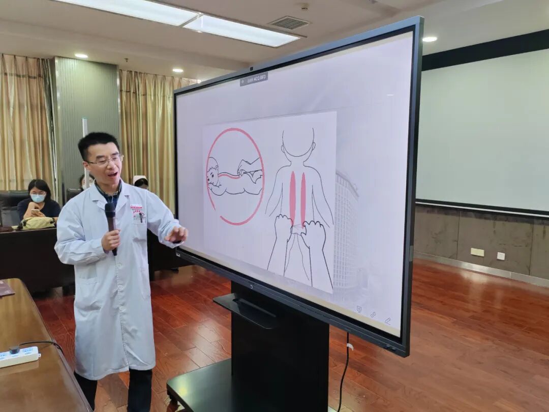 应大家热烈地要求,来自儿科推拿团队的胡勇医师向小记者及家长们介绍并现场演示了小儿捏脊、揉二马穴的操作手法。大家饶有兴趣地学习,争相拍照、实操,不断交流体会。